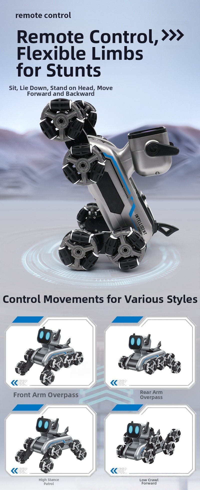 The robot dog can sit, lie down, stand on its head, and move forward or backward.Multiple controllable actionsshowcase different styles. Not only can the robot dogsing, but it can alsodance, bringing you endless fun.